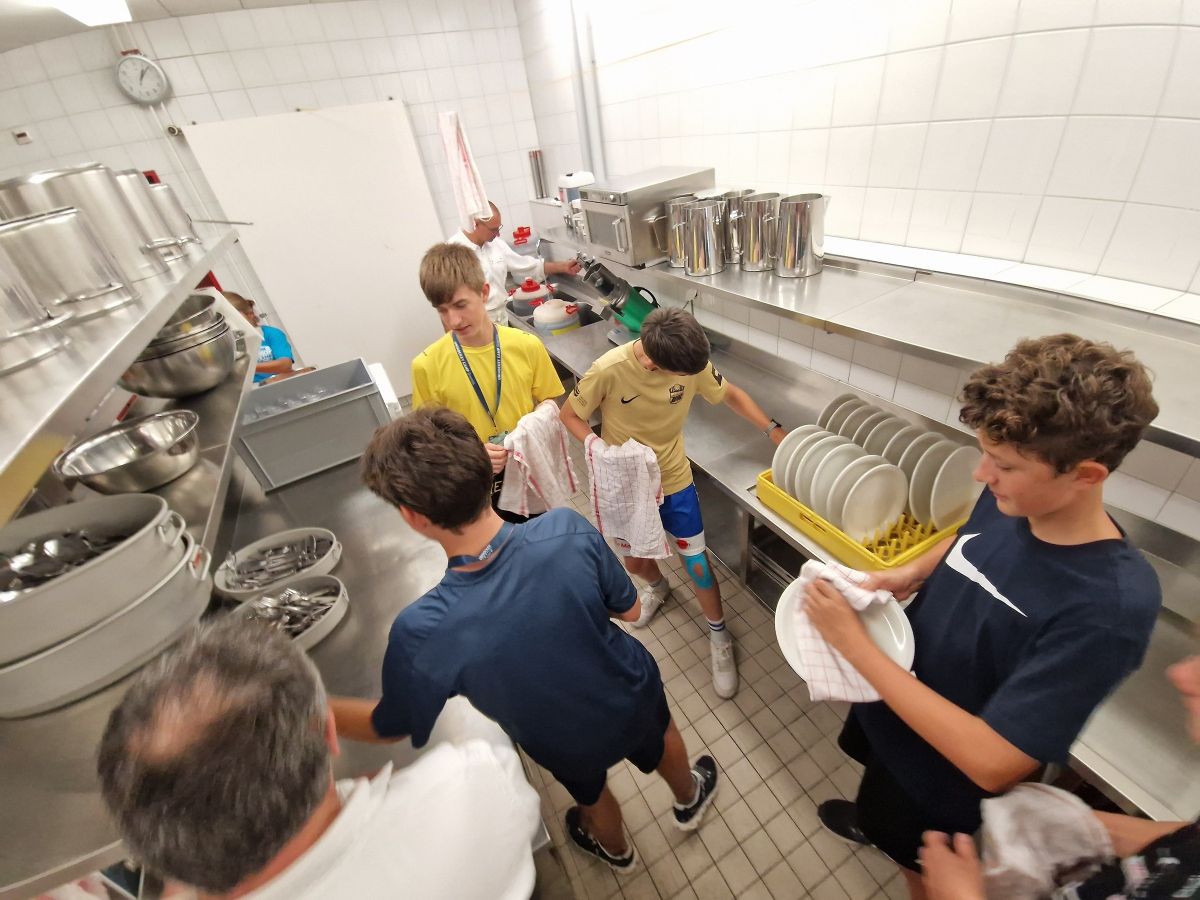 Nun gibt es dann noch den obligatorischen Lagerrückblick, zu dem ein feines Glace gegessen wird. Danach gibt es noch das Nachtturnier, bei dem bunt gemischte Mannschaften, also auch unterschiedliche Altersstufen, gegeneinander spielen. Und wer nicht mehr mag, geht ins Bett.