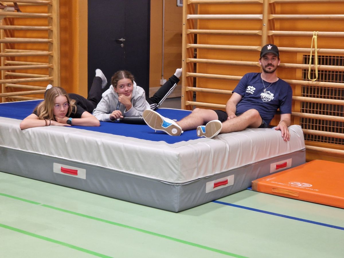 Am Morgen gab es feinen Zmorgen mit Brot, Butter, Konfi und Müesli. Danach trainierten wir in der Halle. Wir übten Passen, Schiessen und Zusammenspielen.